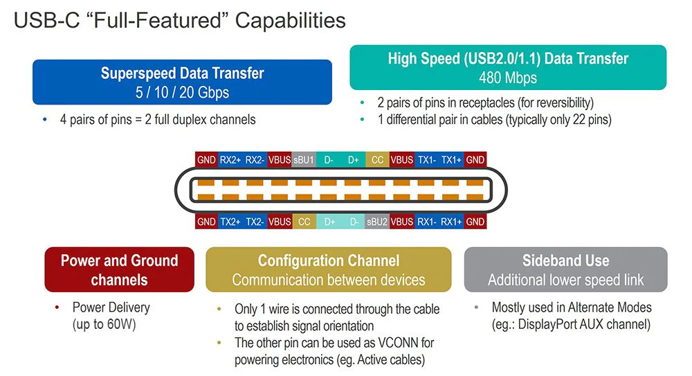 - 4 Lane Displayport Alt mode (4K60FPS Video and Audio)